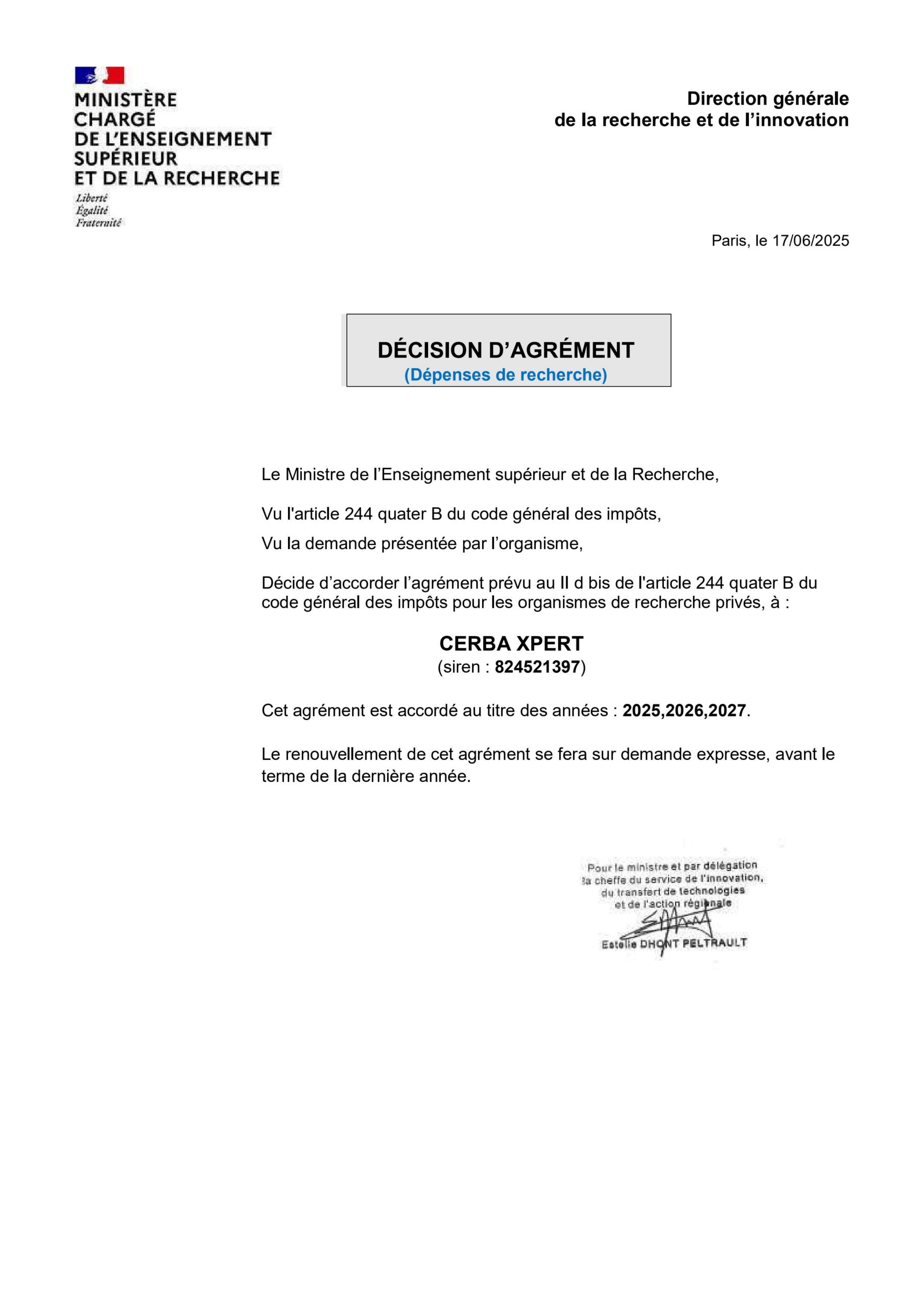 Cerba Research France, is pleased to announce that we have received the favorable decision of the CIR approval from the Ministry of Higher Education and Research covering the years 2022, 2023 and 2024! This is a great advantage for our clients who will be able to integrate our services in the calculation of their CIR; and especially a recognition to our Research Scientists, who see their research work recognized.